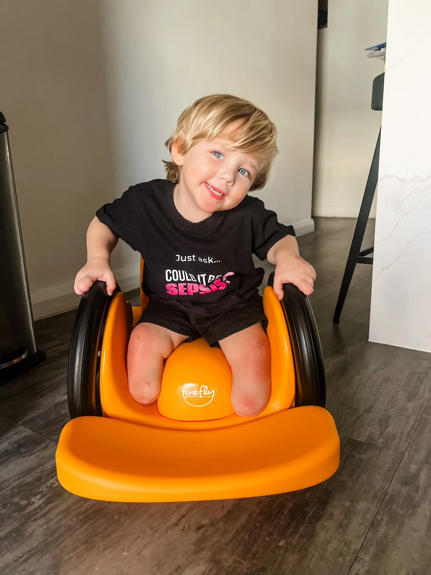 Today, Ryan is still that cheeky, vibrant little boy now three years old. He recently took his first steps on prosthetic legs a moment we’ll never forget.